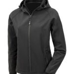 A great-fitting, clean-looking and durable hooded womens softshell made from recycled fabric.