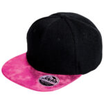 Tear away label. CORE value product. 6 panel. Stitched eyelets. Stiffened front panels. Snapback adjuster. Contrast PU pearl fabric flat peak.