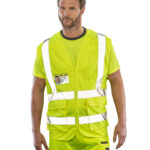Lightweight mesh safety vest with 50mm sewn on reflective body bands. Self-coloured bound edges. Tear release patch pockets. ID pass pocket. Zipped closure. Radio loop. EN ISO 20471:2013 Class 2 .