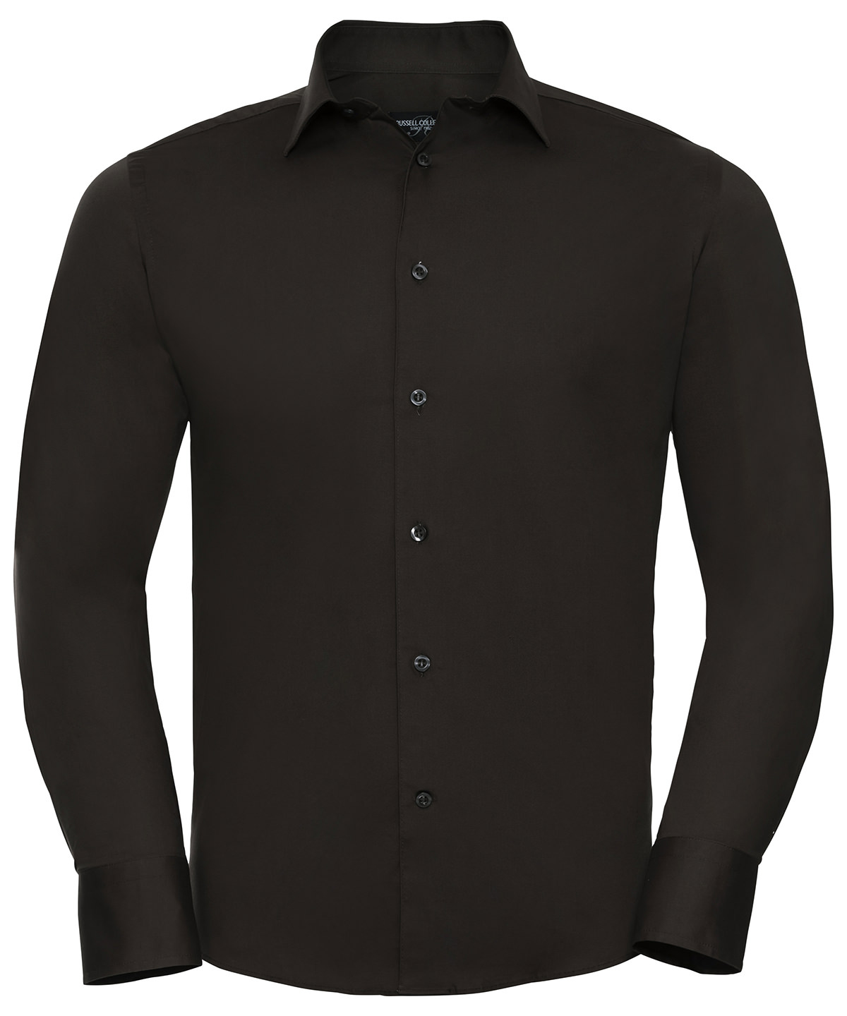 Fitted cut and contemporary design make this style the right choice wherever a modern appearance is required. Smooth fabric with a slight stretch for added comfort and fit. Smart, semi cut-away collar with single button. Mitred double button cuff with single button on cuff gauntlet. Rounded hem. WRAP certified.