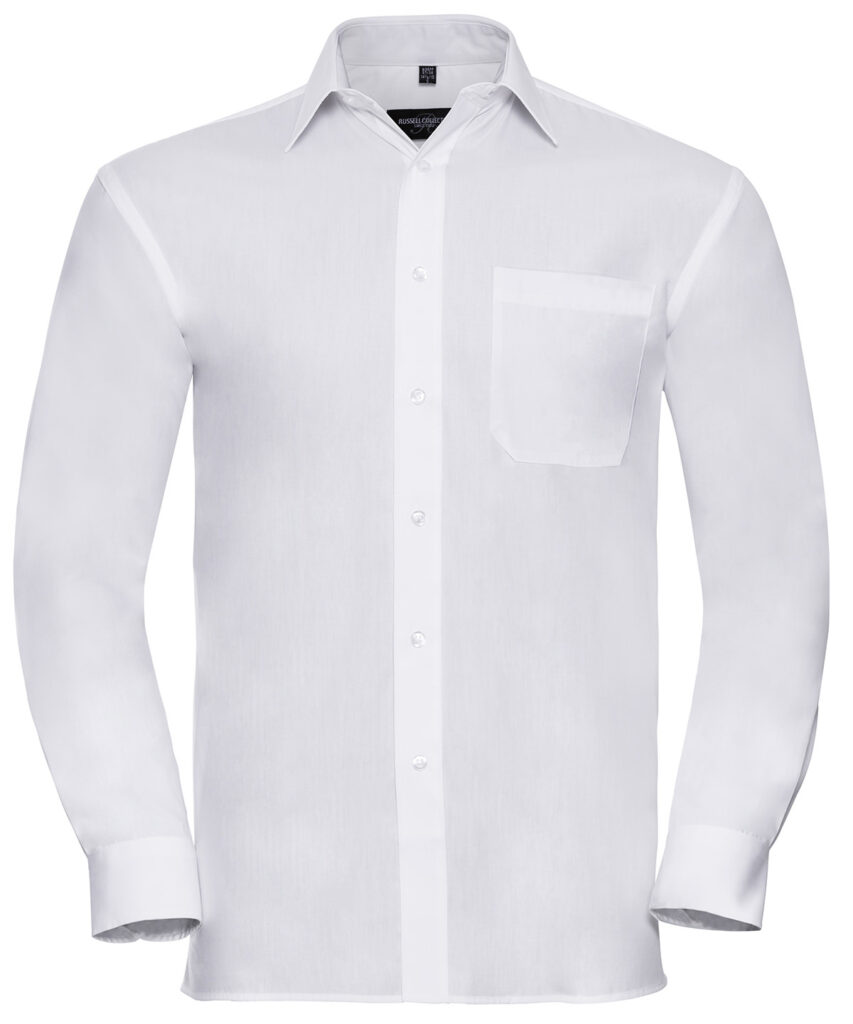 This is an elegant and very durable shirt with all the natural wearer comfort of 100% cotton. Classic style boned collar. Rounded 2 button adjustable cuff plus single button on cuff gauntlet. Back yoke with 2 side pleats. Pocket over left chest mitred edge pocket. Straight bottom hem. WRAP certified.