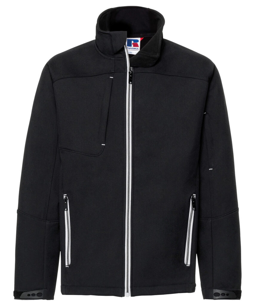 The Bionic softshell jacket is the latest member of the Russell Europe softshell family. This excellent fitting softshell jacket with its timeless design is highly water and wind-resistant. The Bionic-Finish Eco enables the jacket to be water-repellent in an ecological way. Perfect for evoking a smart corporate image for those who are searching for a piece of modern outerwear to top off their corporate look.