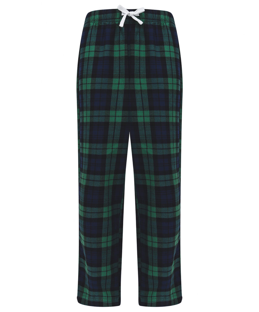 Woven tartan lounge pants with plain hem. Full elasticated waist with contrast mock drawcord. Tear-out label. BSCI certified. Vegan certified.