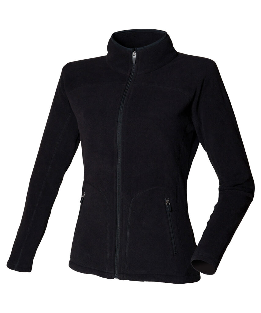 Anti-pill, ultra soft, stretchy lightweight fleece. Long line fitted shape. Sporty side and underarm panels. Flat lock seam detail. Zipped side pockets. BSCI certified. Vegan certified.