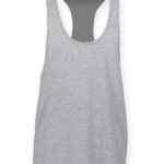 Tear-out SF (Skinnifit) label. Muscle-cut racer-back. Long-line. Self-fabric binding around neckline and armhole. Twin needle straight hem. SEDEX certified. Oeko-Tex certified. BSCI certified. Vegan certified.