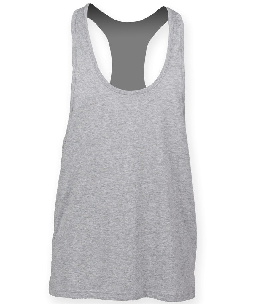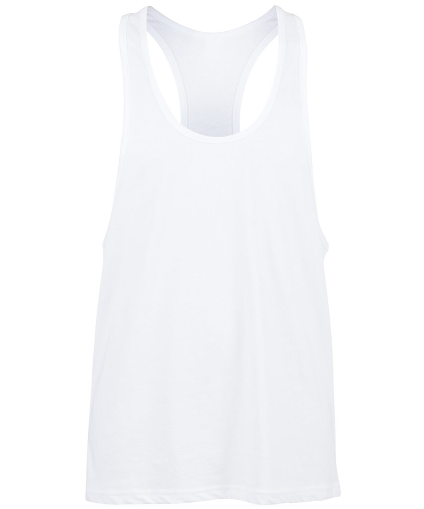 Look cool while warming up in this muscle cut racerback in an on-trend longline fit style. Self-fabric binding around neckline and armholes. Tear-out label for easy rebranding. A great fashion staple and ideal for a body and mind customer.