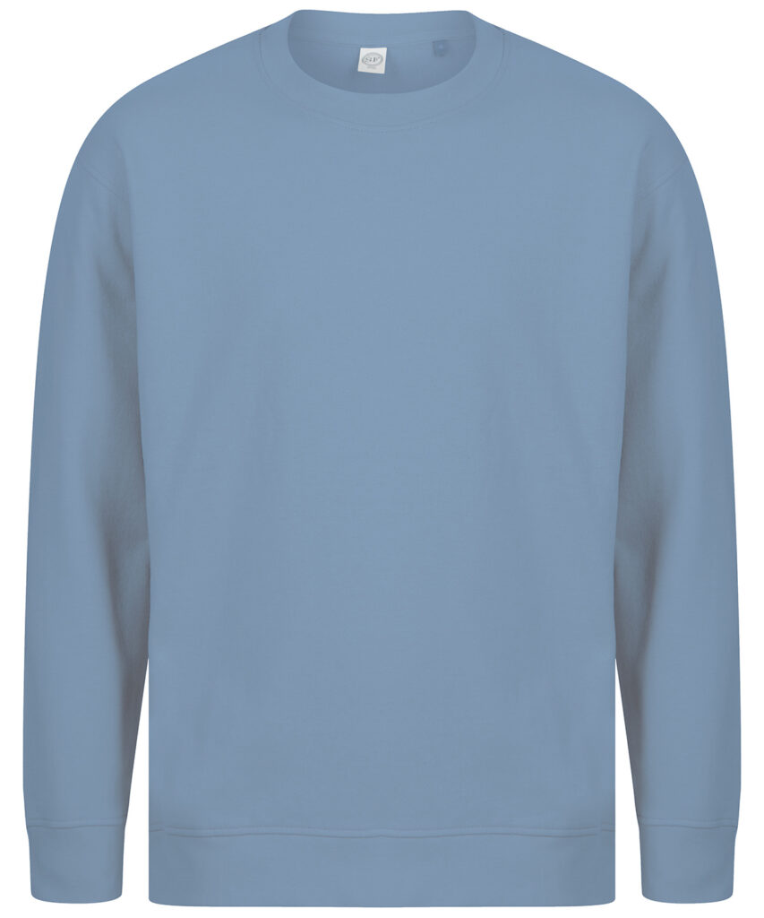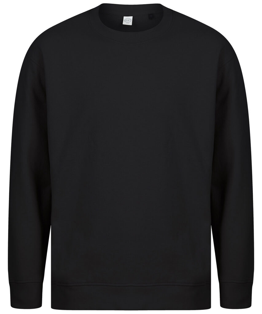 Unisex relaxed-fit sweat. Set-in sleeves, dropped shoulders. Droptail hem curved high front, low back. Ribbed hem cuffs and crew neck. Single Jersey back neck tape and facing. Tonal topstitching detail. Co-ordinates with SF Sustainable fashion range. Brand-free, for easy rebranding. Resealable, recyclable bags; made from 100% recycled plastic. BSCI certified. Oeko-Tex certified. SEDEX certified. Vegan certified.