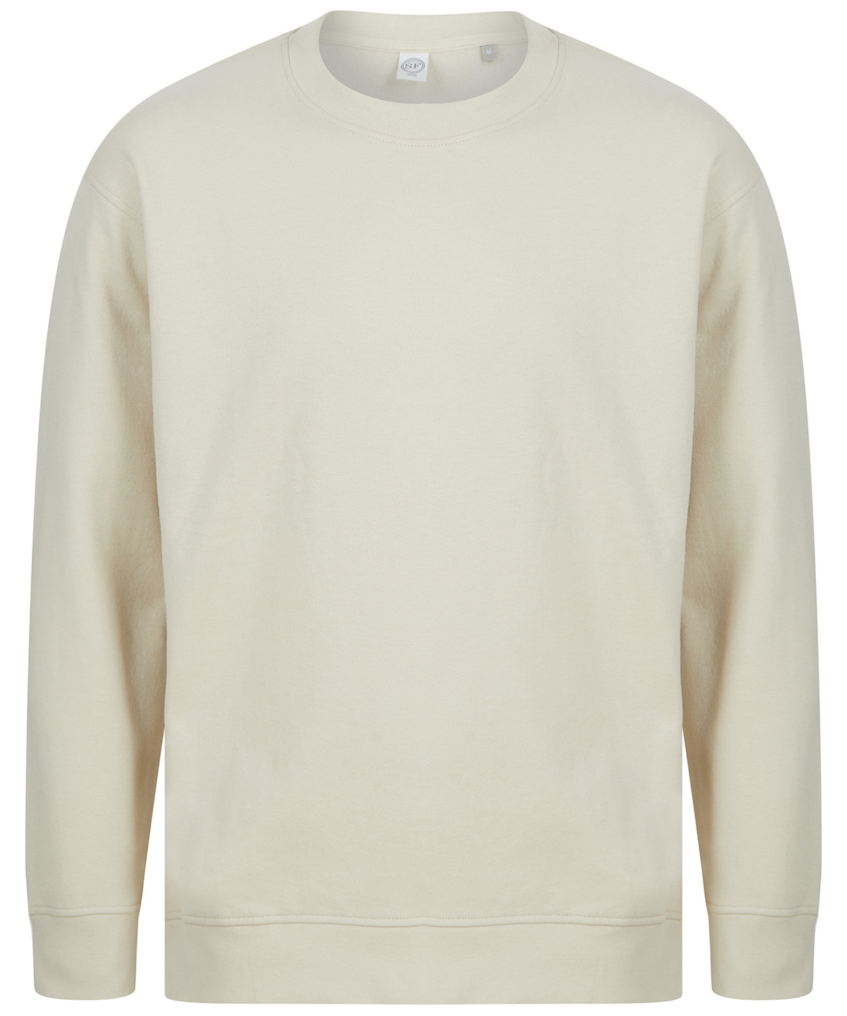 Unisex relaxed-fit sweat. Set-in sleeves, dropped shoulders. Droptail hem curved high front, low back. Ribbed hem cuffs and crew neck. Single Jersey back neck tape and facing. Tonal topstitching detail. Co-ordinates with SF Sustainable fashion range. Brand-free, for easy rebranding. Resealable, recyclable bags; made from 100% recycled plastic. BSCI certified. Oeko-Tex certified. SEDEX certified. Vegan certified.