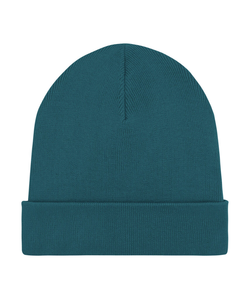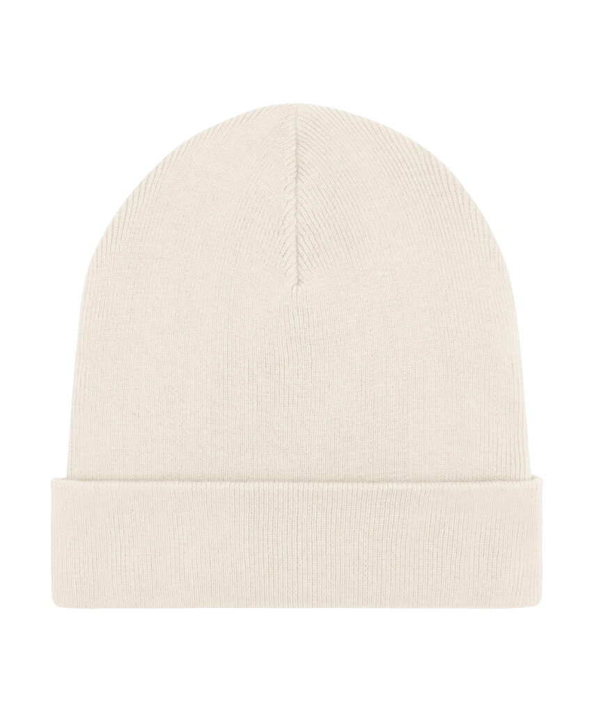 1×1 rib beanie with two layers and foldable brim made of organic cotton and recycled polyester. Unisex fit, in a wide range of colours.