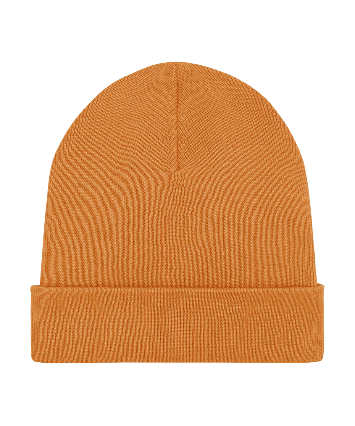 1×1 rib beanie with two layers and foldable brim made of organic cotton and recycled polyester. Unisex fit, in a wide range of colours.