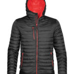 STORMTECH D/W/R durable water-resistant outer shell. Quilted body with ultra soft liner. Centre front vislon zipper with contrast zipper teeth. Elasticized cuffs. Attached hood. Adjustable hem. Set-in sleeves. Brushed tricot hand warmer pockets. Zippered pockets with garages. Chin saver. Internal full-length storm flap. Inside pocket. Internal media port. Embroidery access.