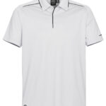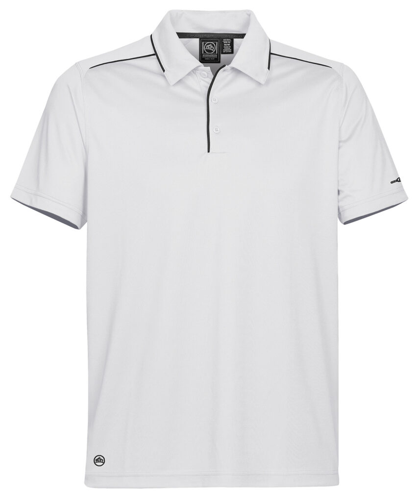 Mositure wicking polo shirt, features a durable self fabric collar, with high contrast trim at the collar and shoulders.