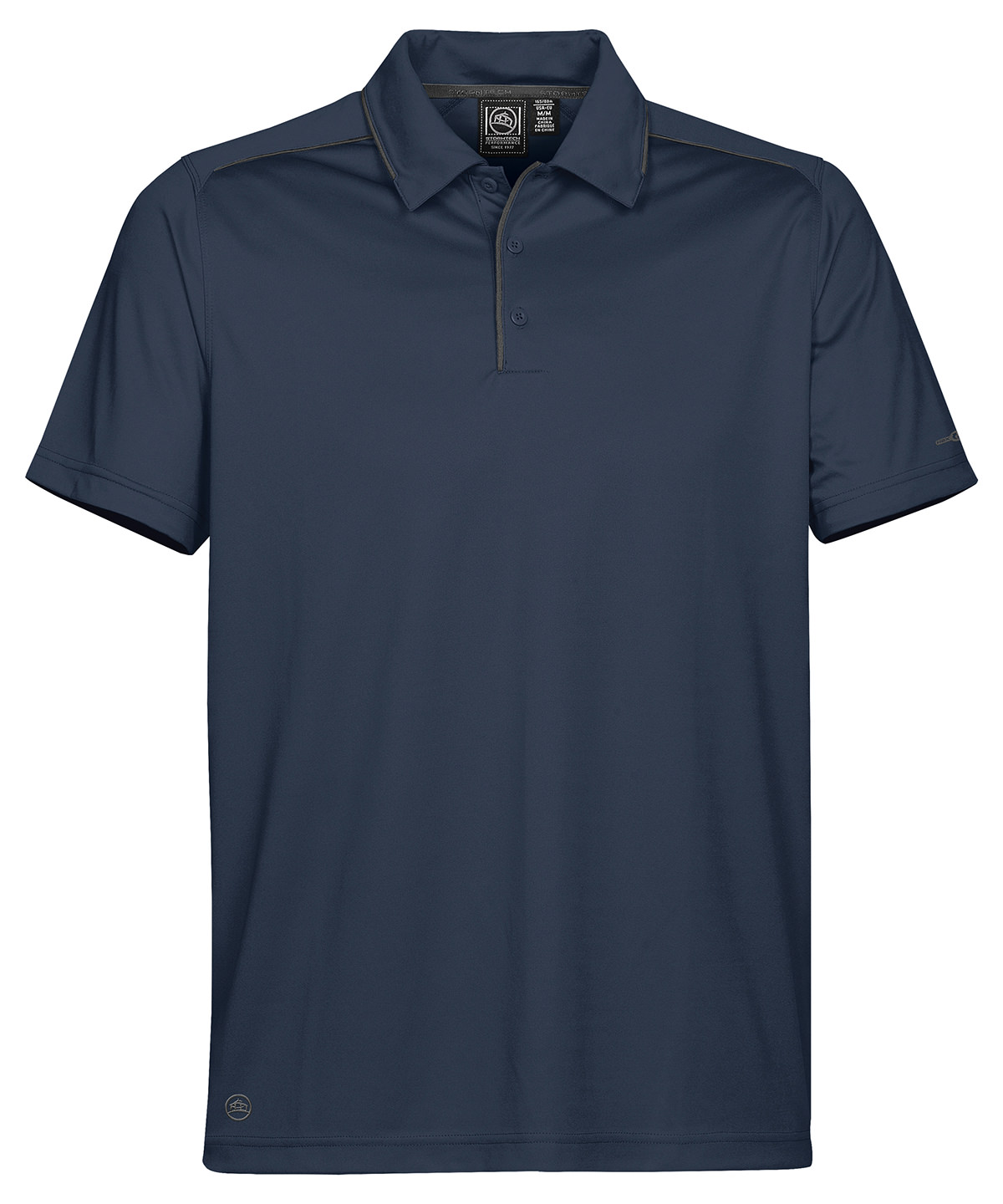 Mositure wicking polo shirt, features a durable self fabric collar, with high contrast trim at the collar and shoulders.