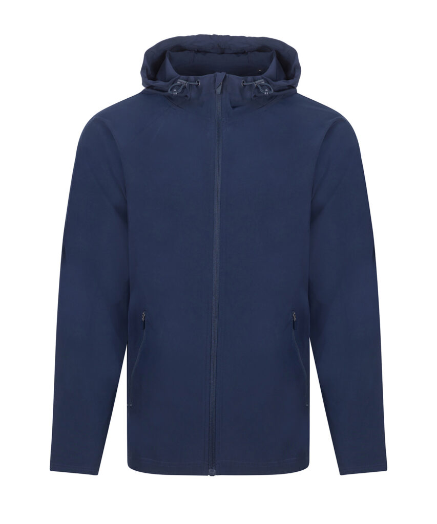Unisex technical full-zip hoodie made from four-way stretch microfibre fabric. Unlined. Reverse coil zip with snap-down pull. Zip guard/inner flap at centre front. Raglan sleeves. Sports toggle pulls at the neck funnel. Three-piece hood. Zipped side pockets with self-fabric pocket bags. Dropped hem at the rear. Twin-needle stitched hems.