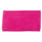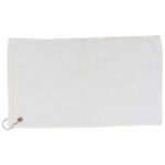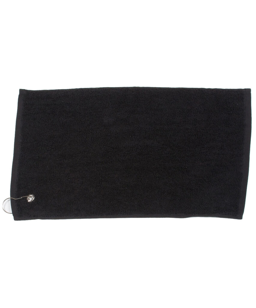 Luxury golf towel with soft, deep pile and excellent absorbency. Featuring a herringbone border with a convenient grommet and hanging loop. Available in a wide selection of popular colours.