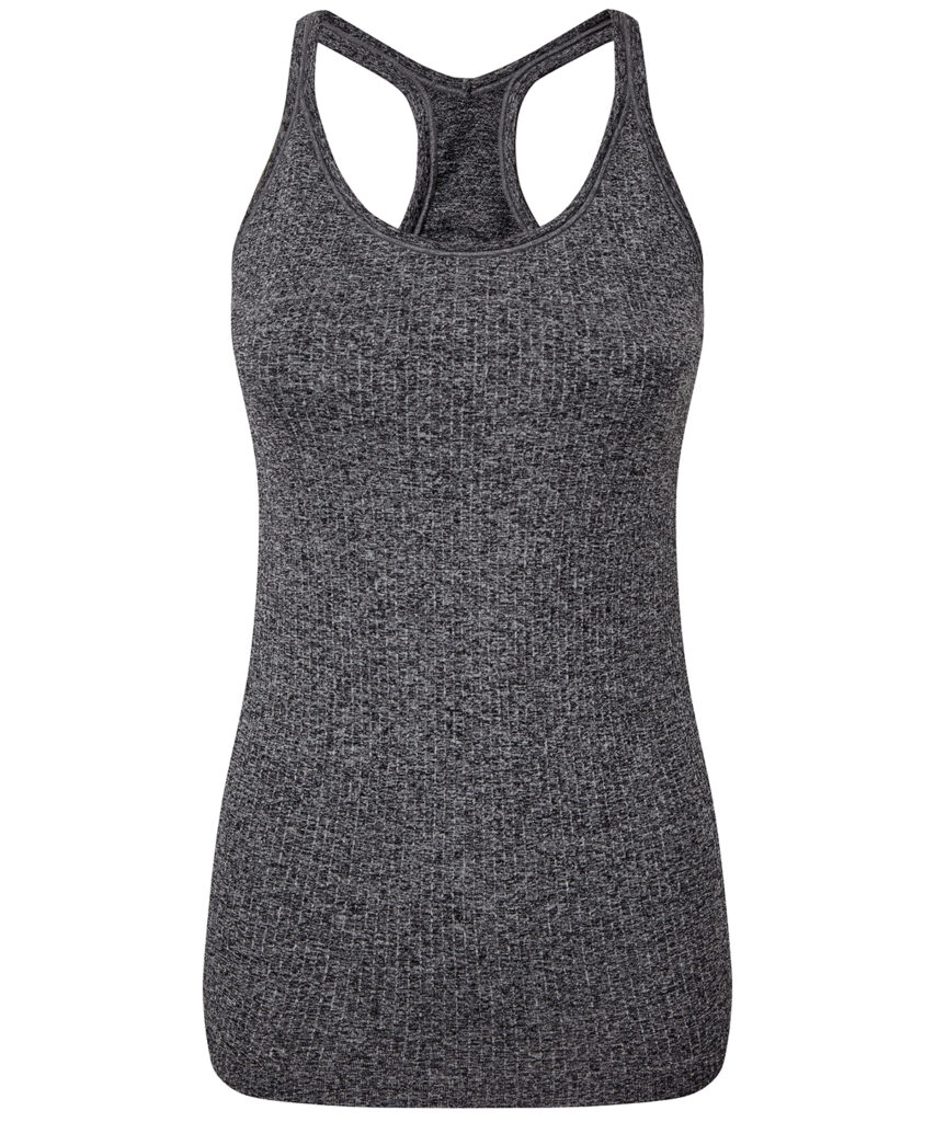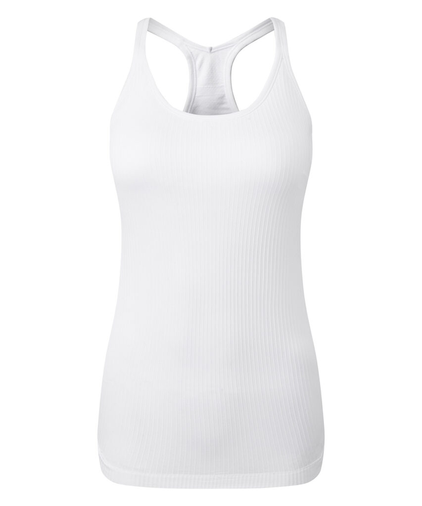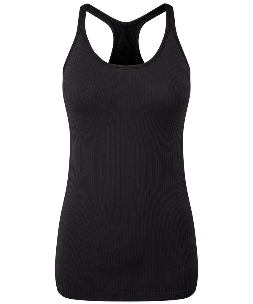 Seamless vest. Contrast detailing. Body sculpting design detailing. Racerback. Hidden sports bra inner with removable bra pads for additional support. Ribbed stretch fabric. Medium impact. We recommend using block out vinyl and inks.Product contains no branded neck or waist label. Removable Kimble or looped garment tags. Inner seam label holds important product information on one label with a second label containing brand information which can be cut-away.