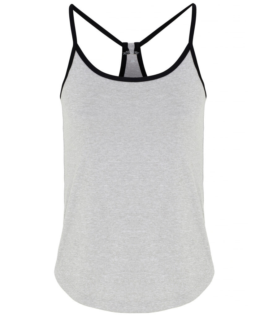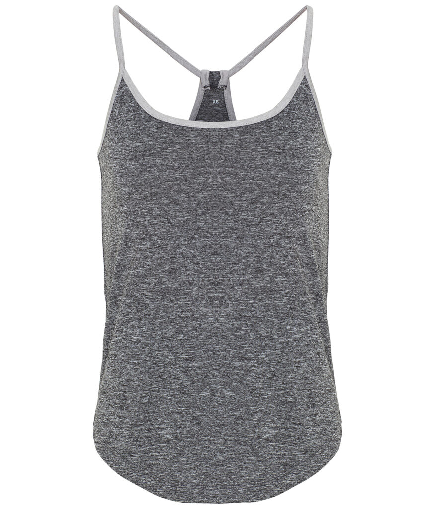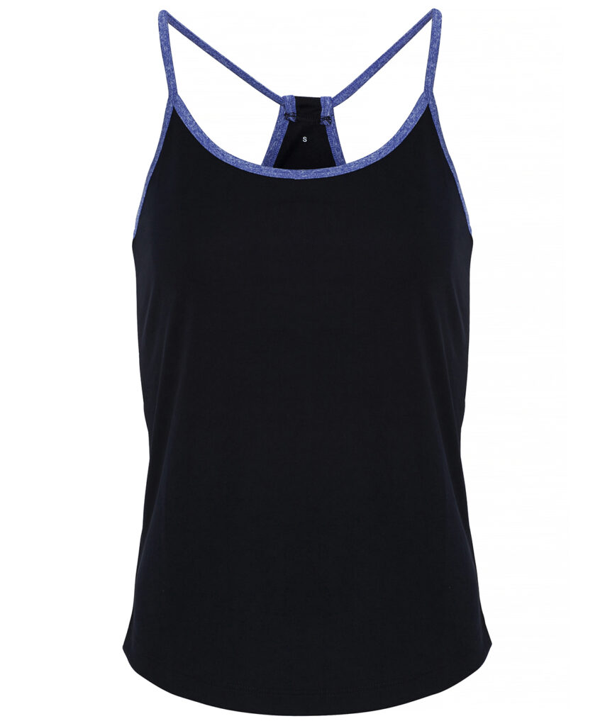 Wicking fabric. Scoop neck. Flattering cut for the female figure. Contrast spaghetti straps, racer back. We recommend using block out vinyl and inks.Product contains no branded neck or waist label. Removable Kimble or looped garment tags. Inner seam label holds important product information on one label with a second label containing brand information which can be cut-away.