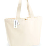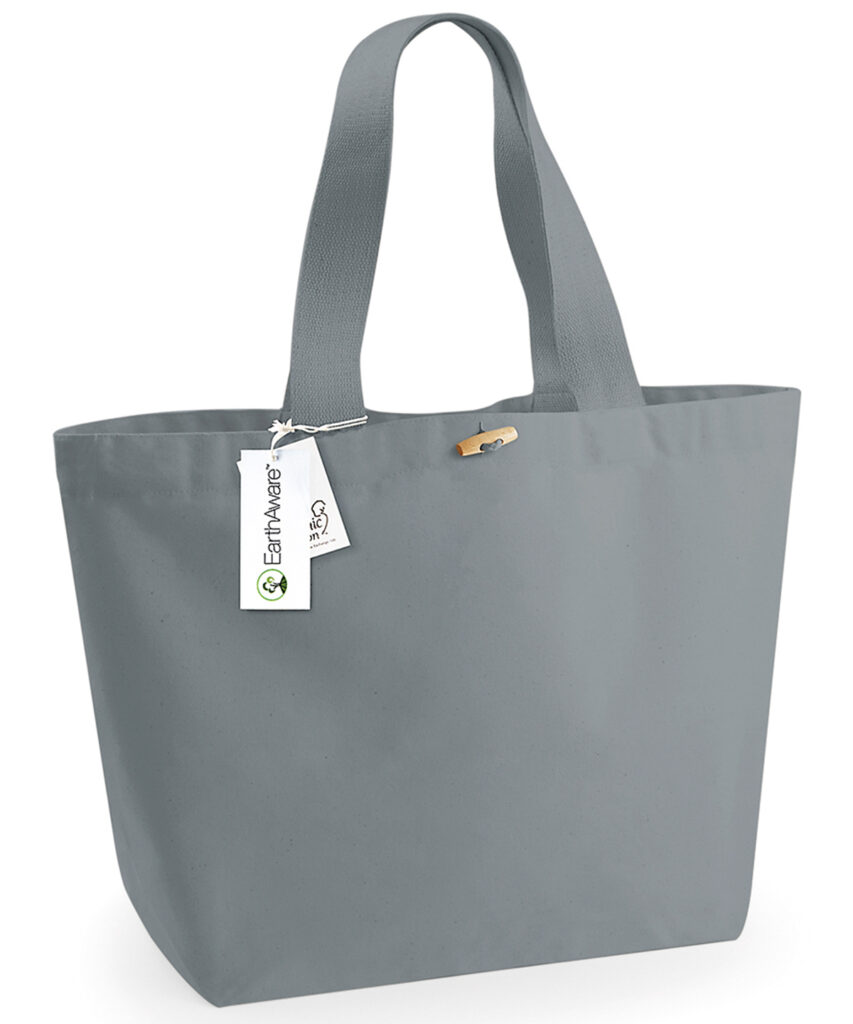 Premium heavyweight fabric. Natural wooden toggle closure. Cotton webbing carry handles. Can be carried by hand or over the shoulder. Handle length: 60 cm. GOTS certified.