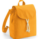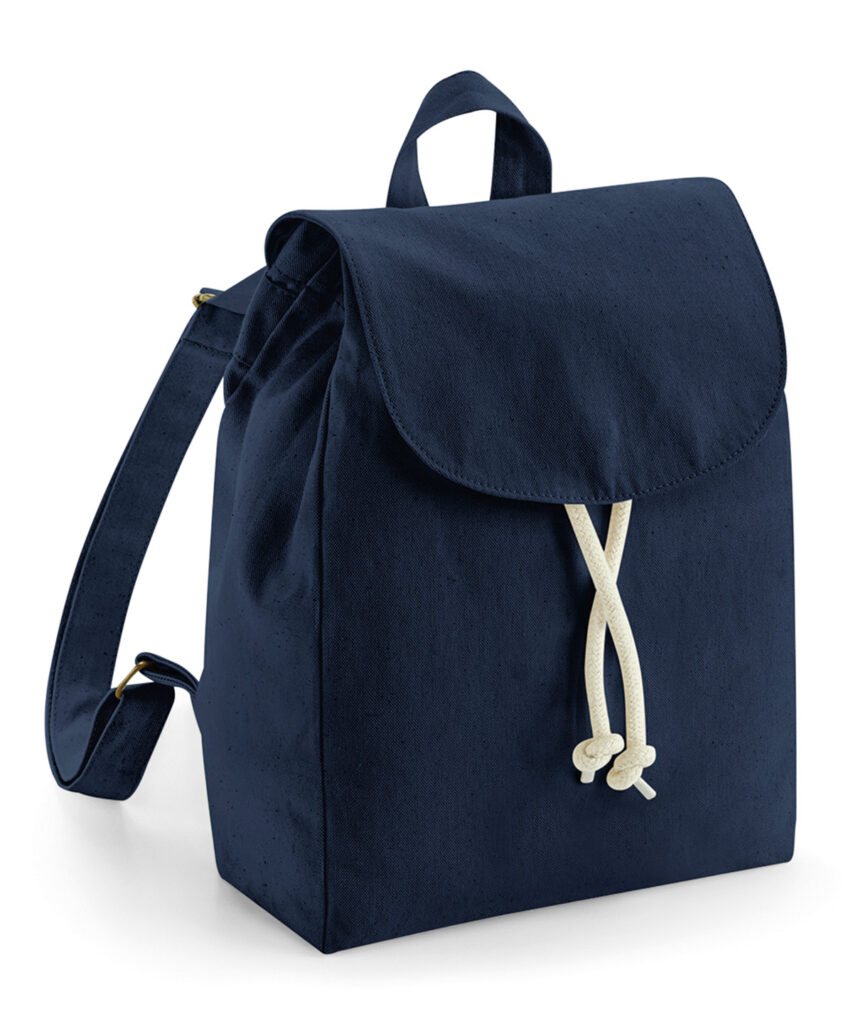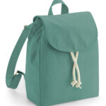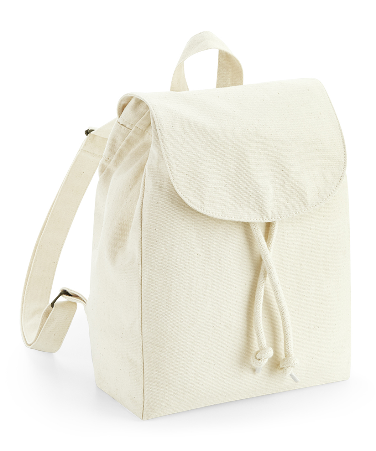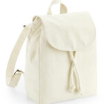 Contains 100% OCS-certified organic cotton, certified by Control Union CU811033. Premium, heavyweight fabric. Fold-over flap with secure press stud. Rope drawcord closure. Self-fabric adjustable shoulder straps. Grab handle.