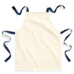 Full bib apron. Cotton Herringbone neck tie with adjustable Rip-Strip fastening safety closure. Cotton Herringbone 60cm waist ties. Fairtrade certified. Fairtrade certified.
