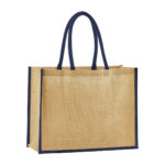 Every piece in the unlaminated Natural Starched Jute collection has angular edges and a sturdy construction for more boxy styling and structured storage. The fabric is tactile to the touch and organic in aesthetic, yet still robust and reliable. This classic shopper will look the part, whether browsing high street stores or picking up groceries at a farm shop. Contrast colour handles add an extra touch of rustic charm.?