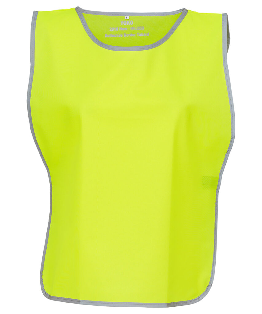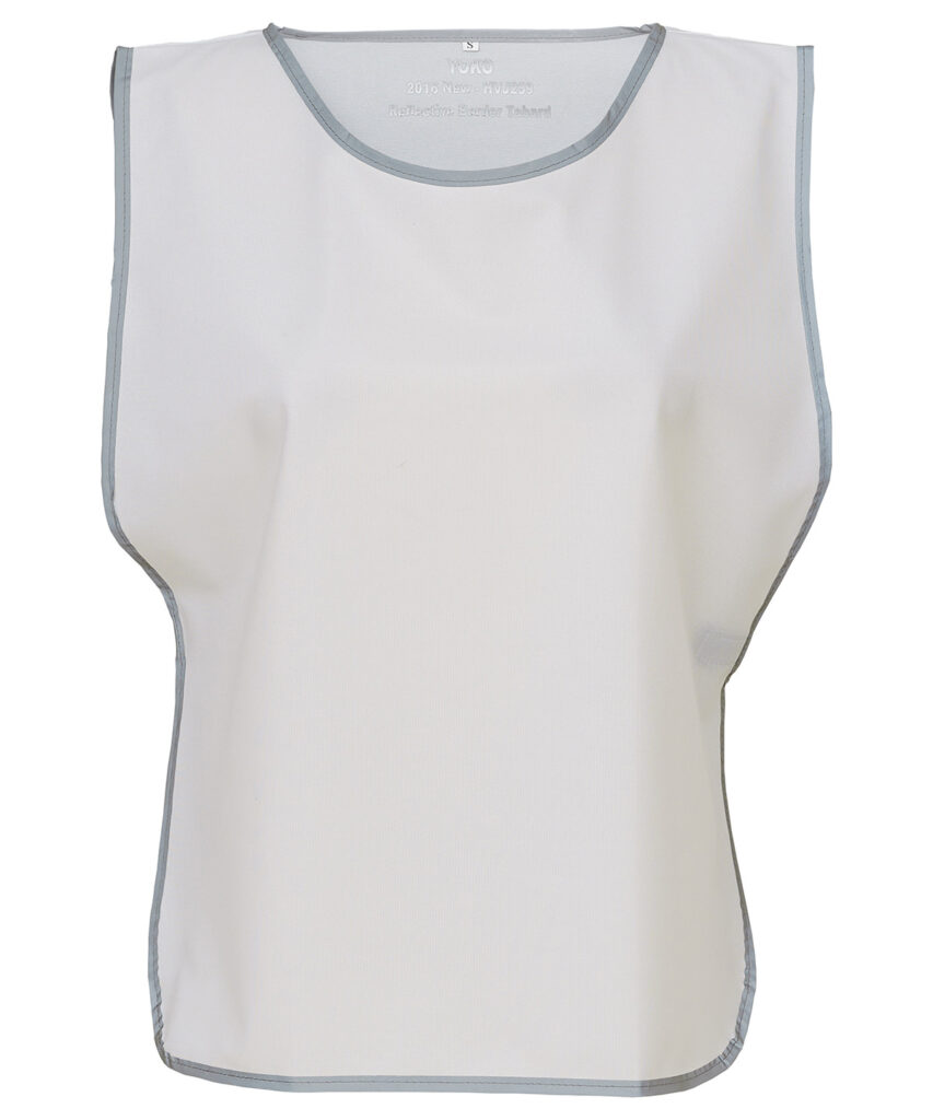 Great sporting event, outdoor activities and promotional tabards with reflective border around for the extra visibility, 10cm elastication and 10cm hook and loop fastening on each side for wide chest adjustment and comfortable wearing; Large decoration area on the front and rear. Oeko-Tex certified.